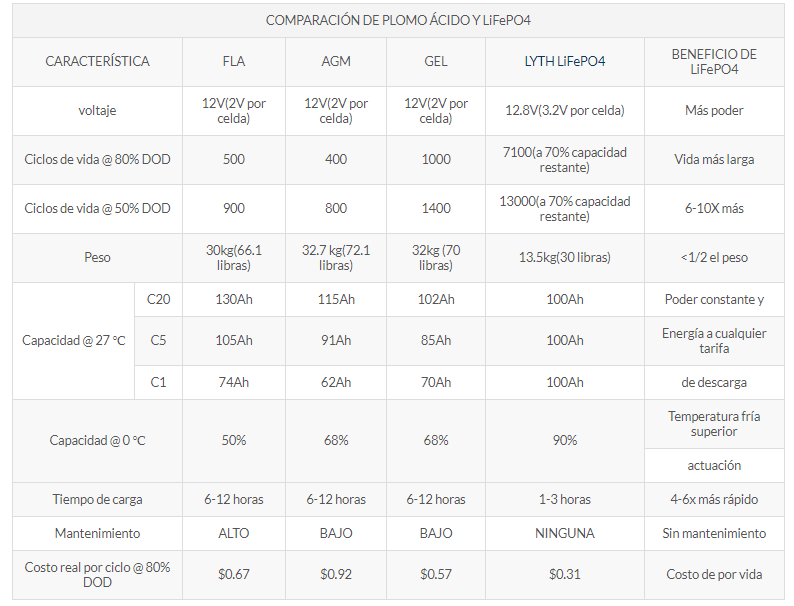 Finalmente, te compartimos un cuadro comparativo de las diferentes tecnologías en baterías: